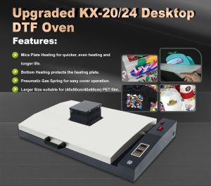 Стабильная и эффективная DTF печь обеспечивает равномерное расплавление термопорошка и его прочное сцепление с чернилами, предотвращая такие проблемы, как трещины, слабая адгезия или неравномерный перенос.